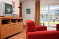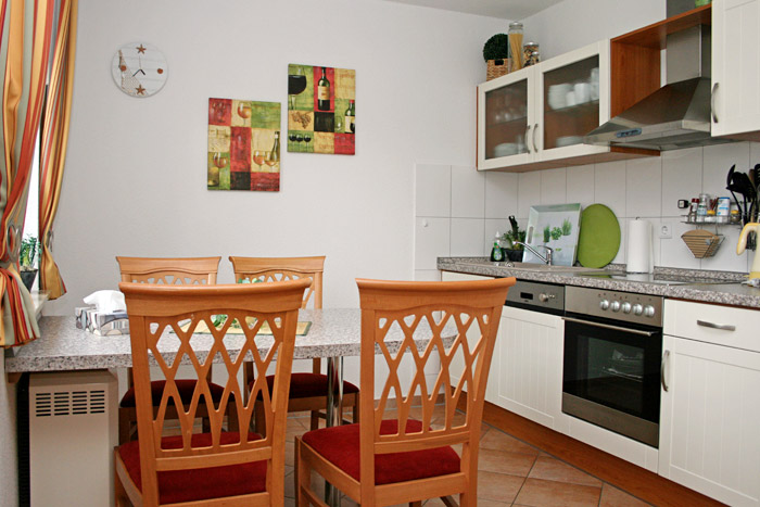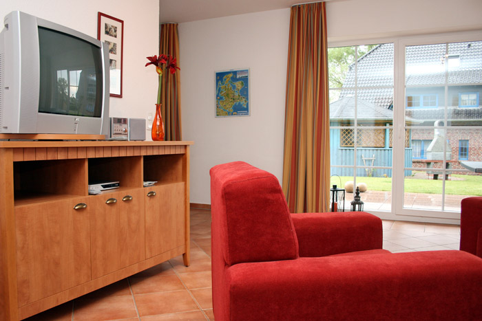 2 groß und befindet sich im 1. Obergeschoss. Diese Wohnung ist für 2 bis 4 Personen geeignet (Aufbettung für 3. und 4. Person im Wohnzimmer möglich). Sie besteht aus einem Wohnzimmer mit Küchenzeile, einem Schlafzimmer und einem Bad mit Dusche. Sie verfügt außerdem über einen Balkon.